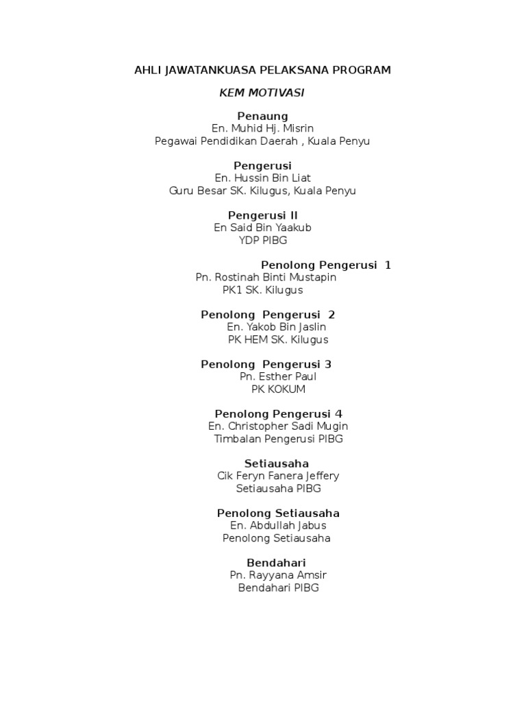Senarai Nama Ajk Pengarah Program