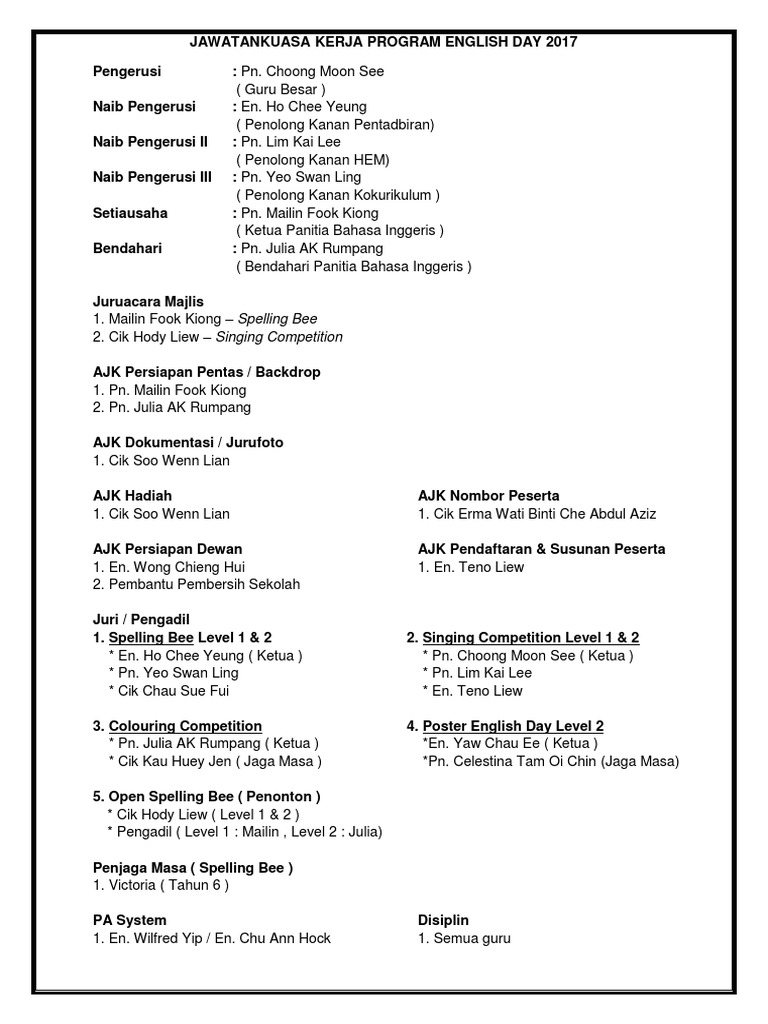 Jawatankuasa Kerja English Day 2017 1