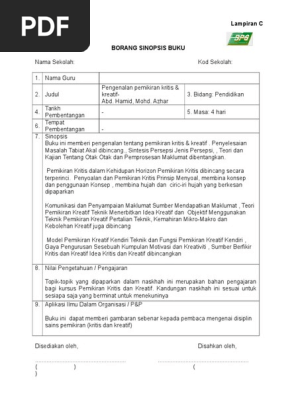 Doc Lampiran C Borang Sinopsis Buku Lizawati Masroni Academia Edu