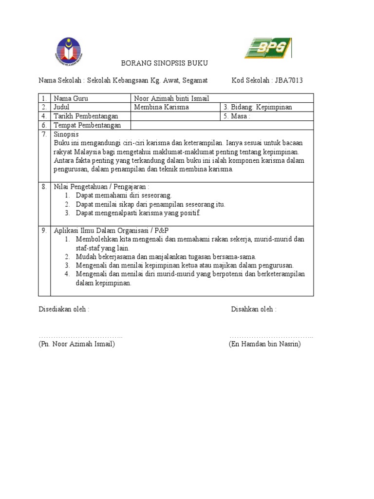 Borang Sinopsis Buku