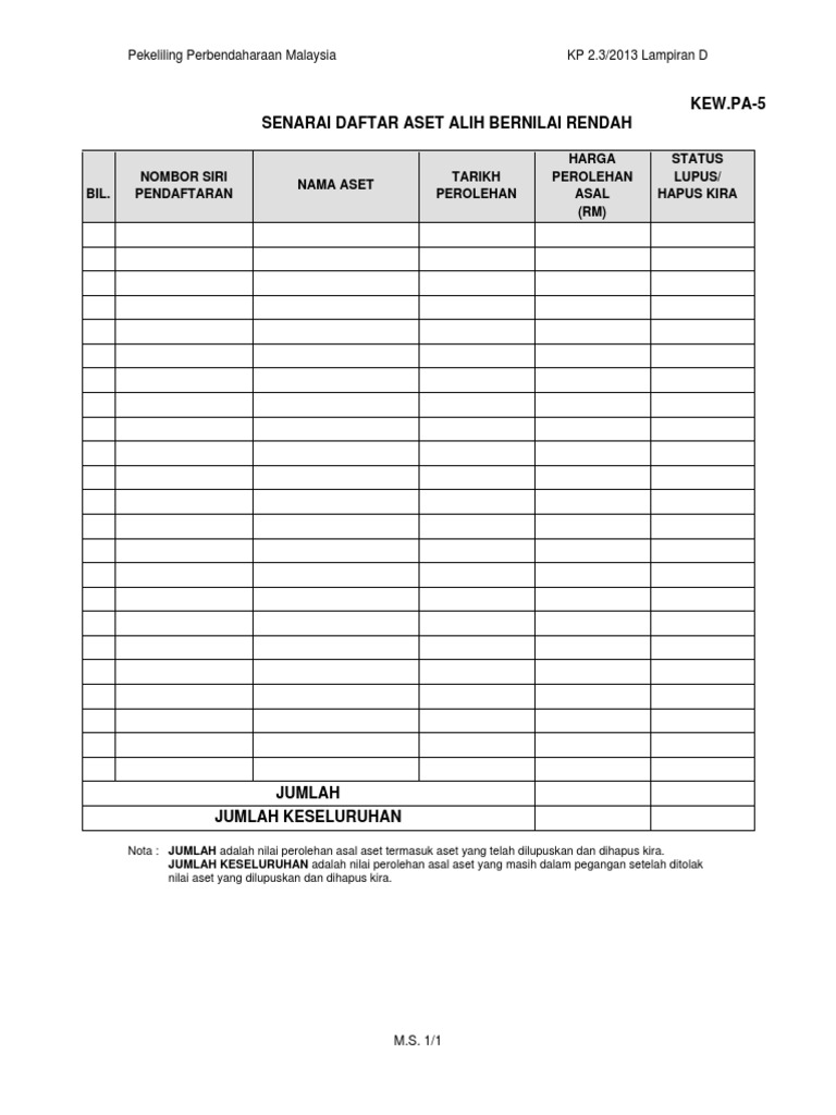 Kew Pa 3 Daftar Aset Alih Yang Bernilai Rendah