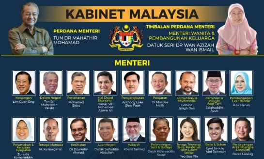 Senarai Penuh Menteri Kabinet Malaysia Kerajaan Pakatan Harapan 2018