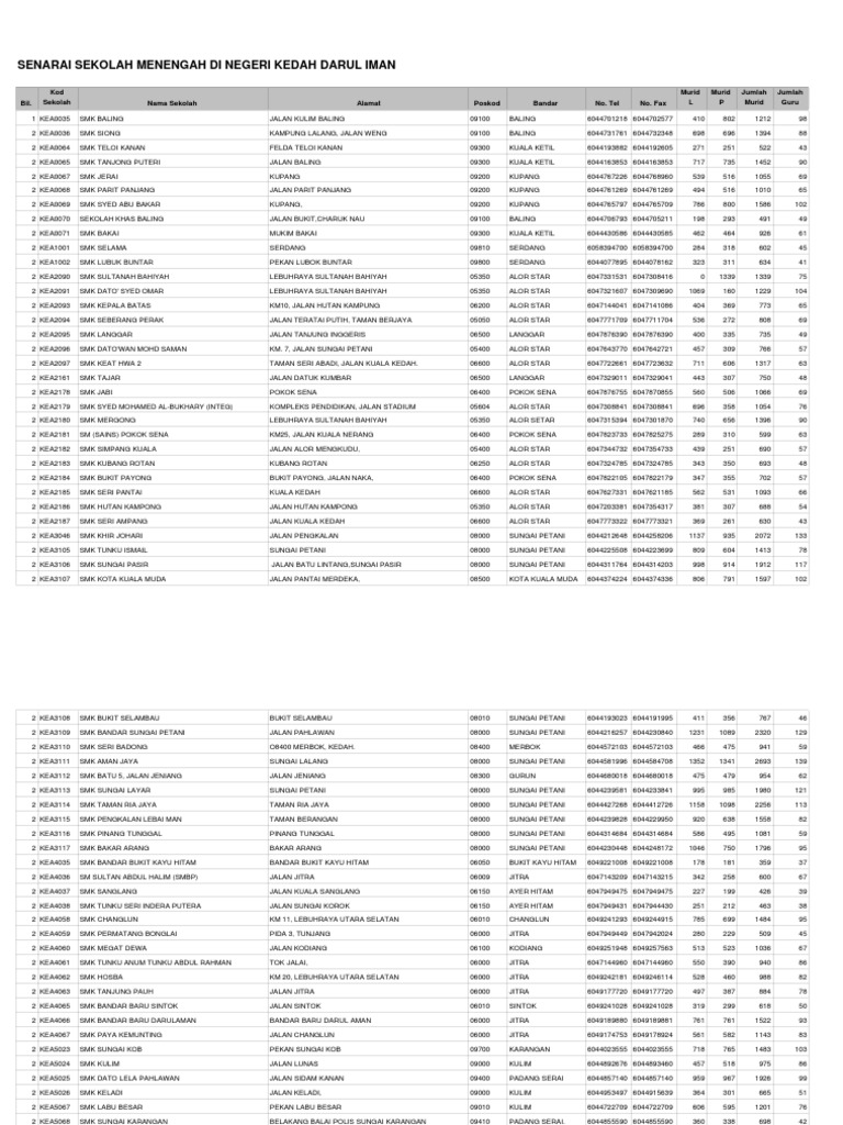 Senarai Smk Di Kedah