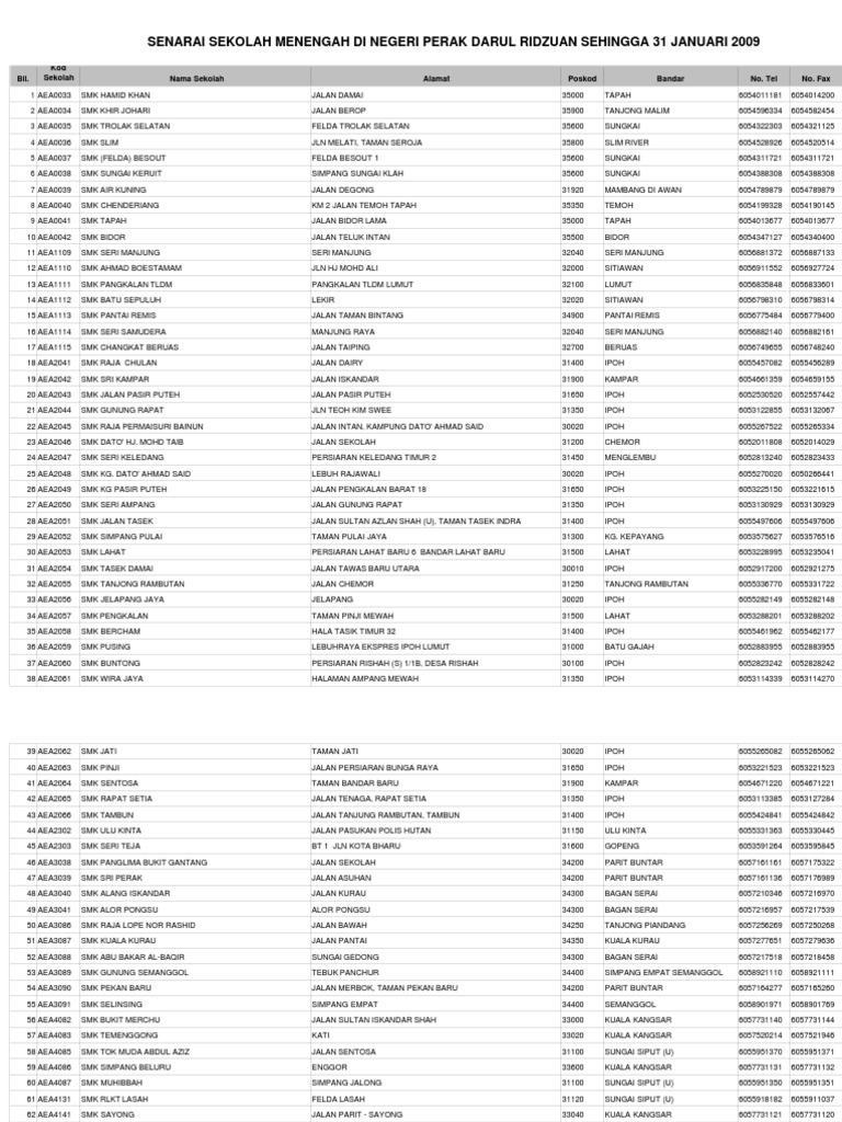 Senarai Sekolah Menengah Di Perak