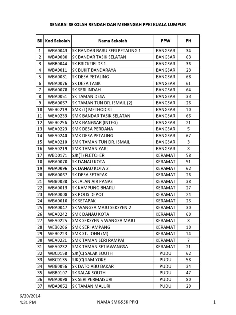 Senarai Nama Sekolah Wilayah Kl