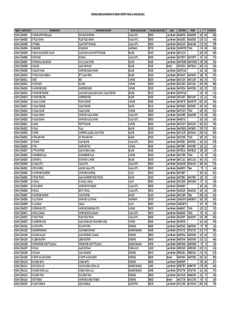 Senarai Sekolah Rendah Di Kedah Seperti Pada Emis