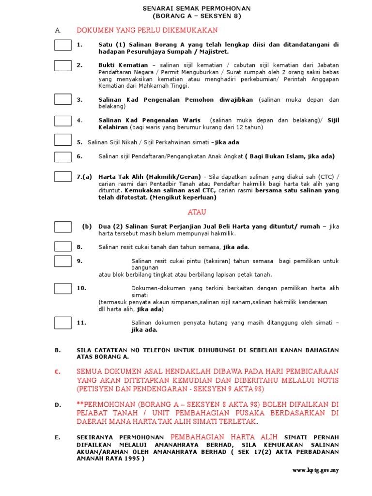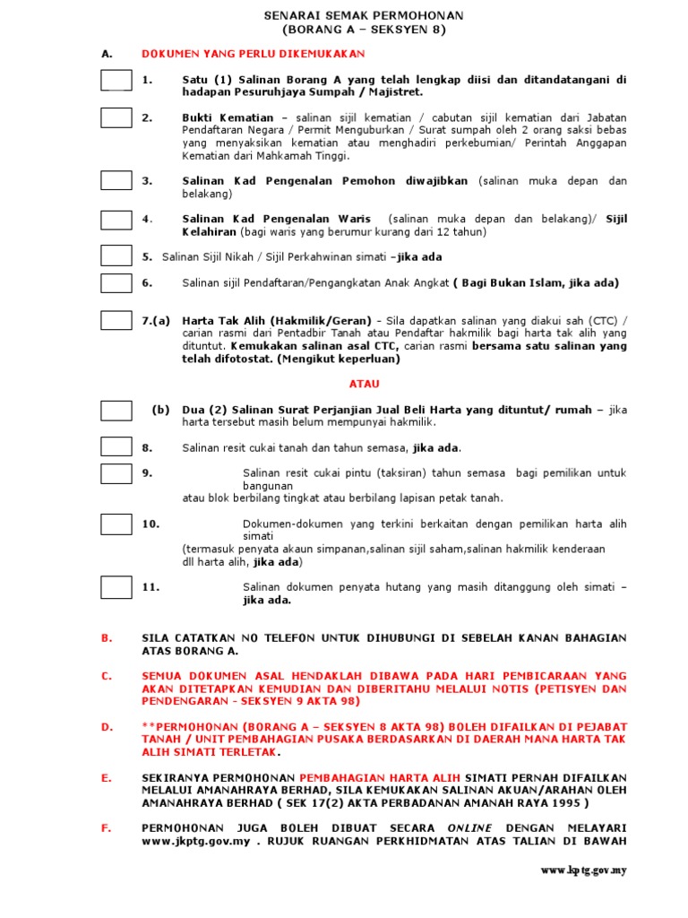 Senarai Semak Borang A Harta Pusaka