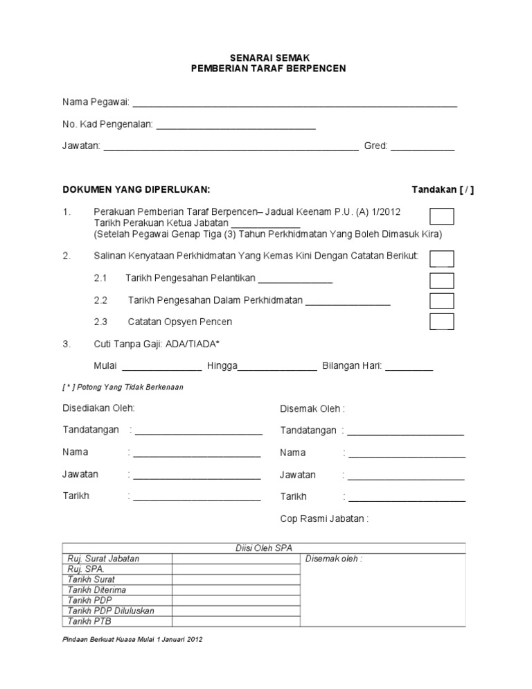 Senarai Semak Pemberian Taraf Berpencen Spp