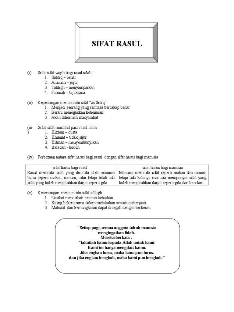 Sifat Wajib Mustahil Dan Sifat Jaiz Para Rosul