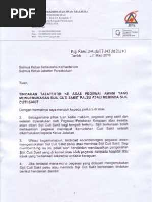 Pekeliling Tindakan Tatatertib Ke Atas Pegawai Awam Yang Mengemukakan Sijil Cuti Sakit Palsu Atau Meminda Sijil Cuti Sakit