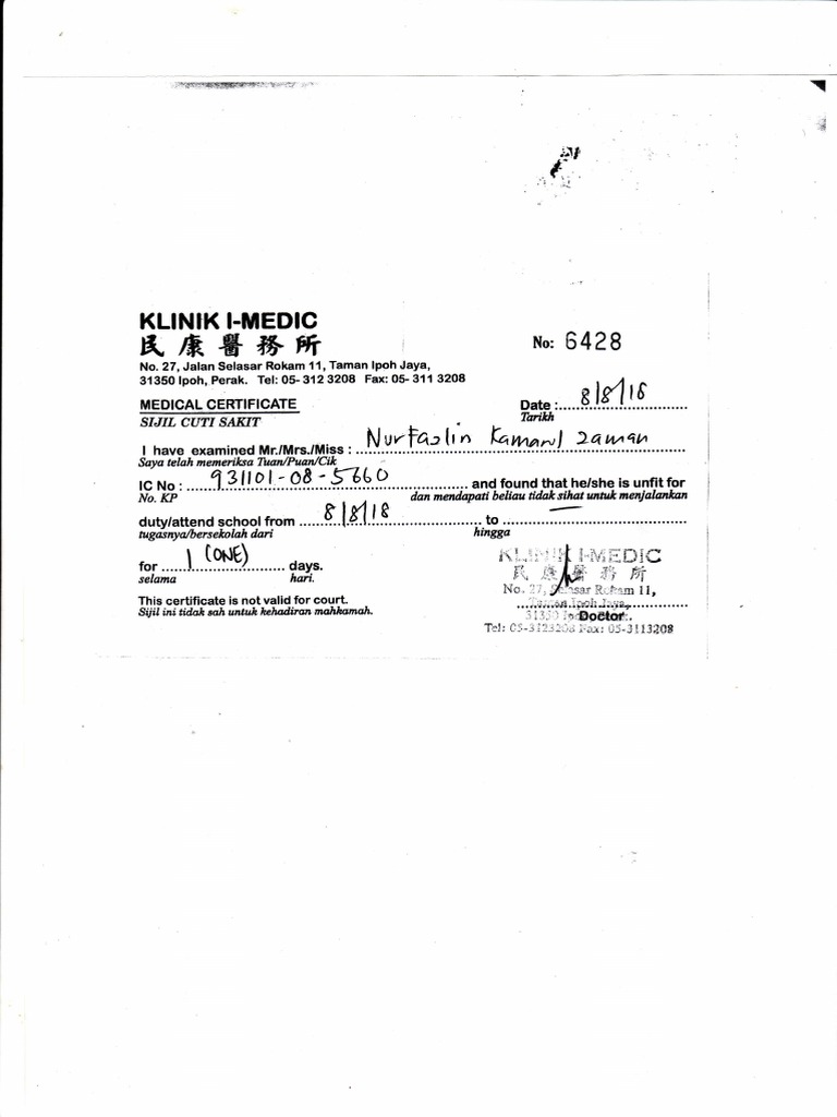 3 Cara Cara Untuk Mendapatkan M C Atau Surat Sakit Dari Doktor Borneoblogs