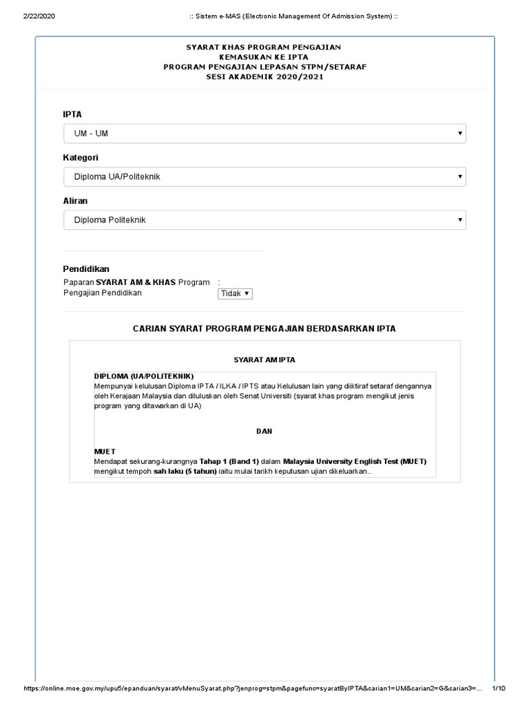 Sistem E Mas 2020 Semakan Syarat Kelayakan Upu My Panduan