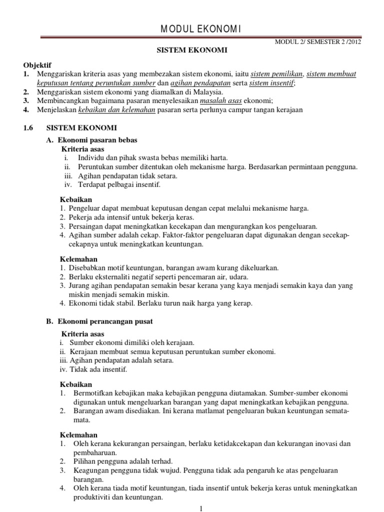 Perbandingan Antara Ciri Ciri Sistem Ekonomi Nash Notes