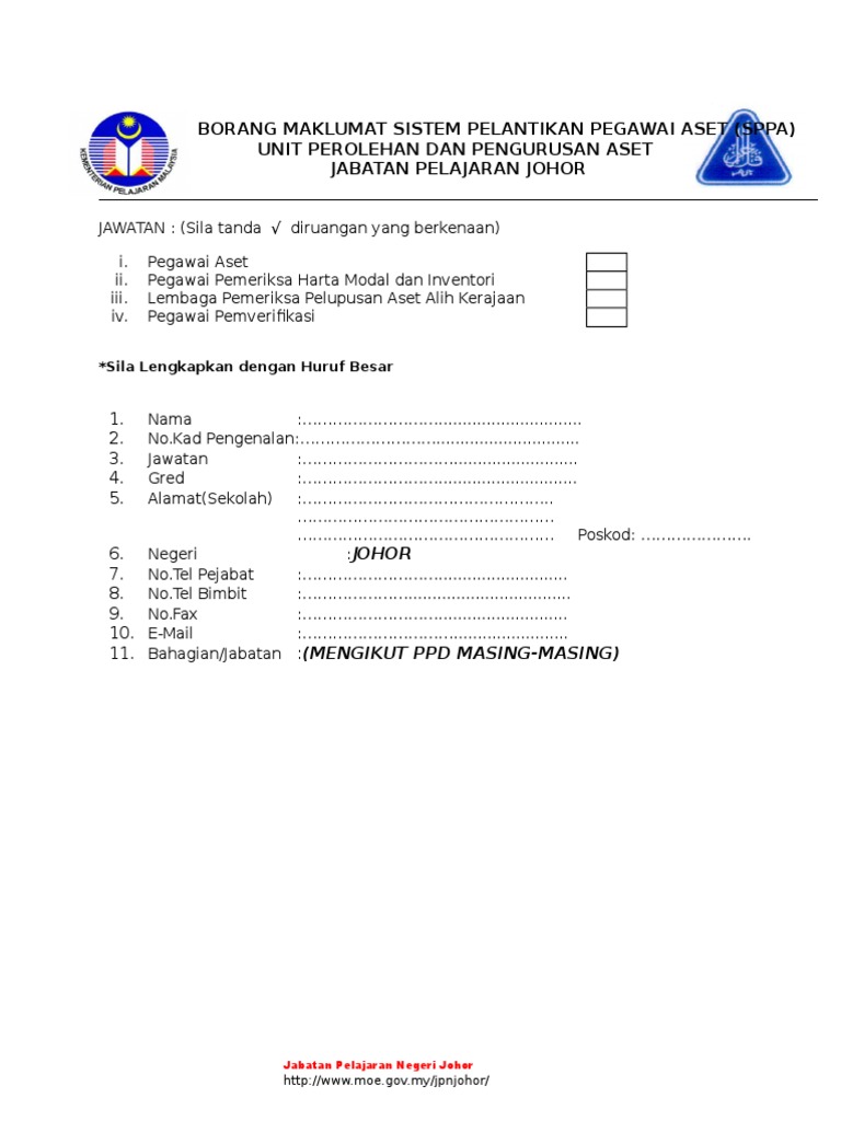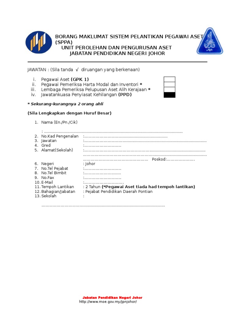 2015 06 24 Borang Perlantikan Pegawai Aset Pegawai Pemeriksa Lembaga Pemeriksa Dan Pegawai Pemverifikasi