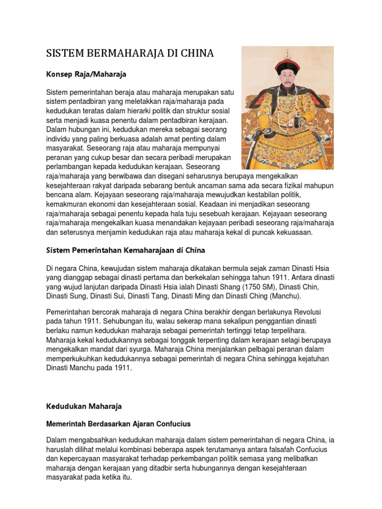 Sejarah Dunia Pemerintahan Beraja Di China