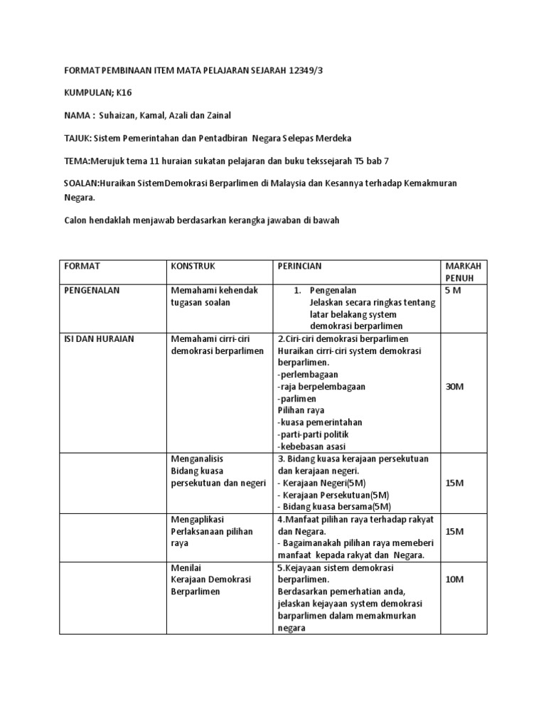Sistem Pemerintahan Dan Pentadbiran Negara Malaysia Sejarah Kertas 3