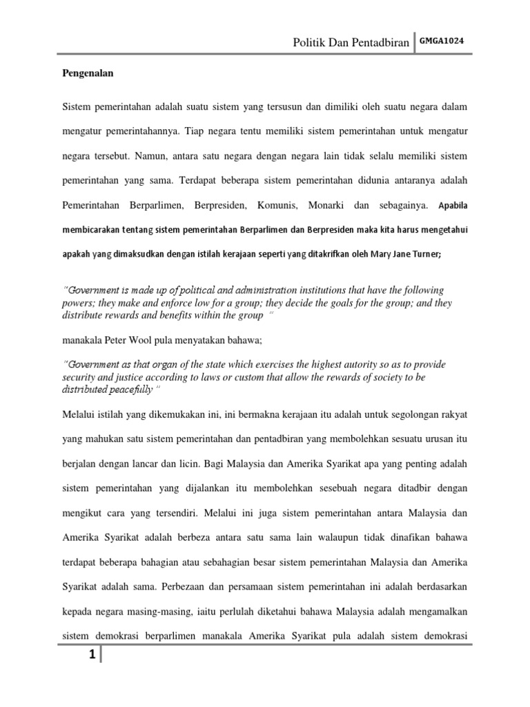 Pengenalan Perbandingan Antara Sistem Berparlimen Dan System Berpresiden Docx