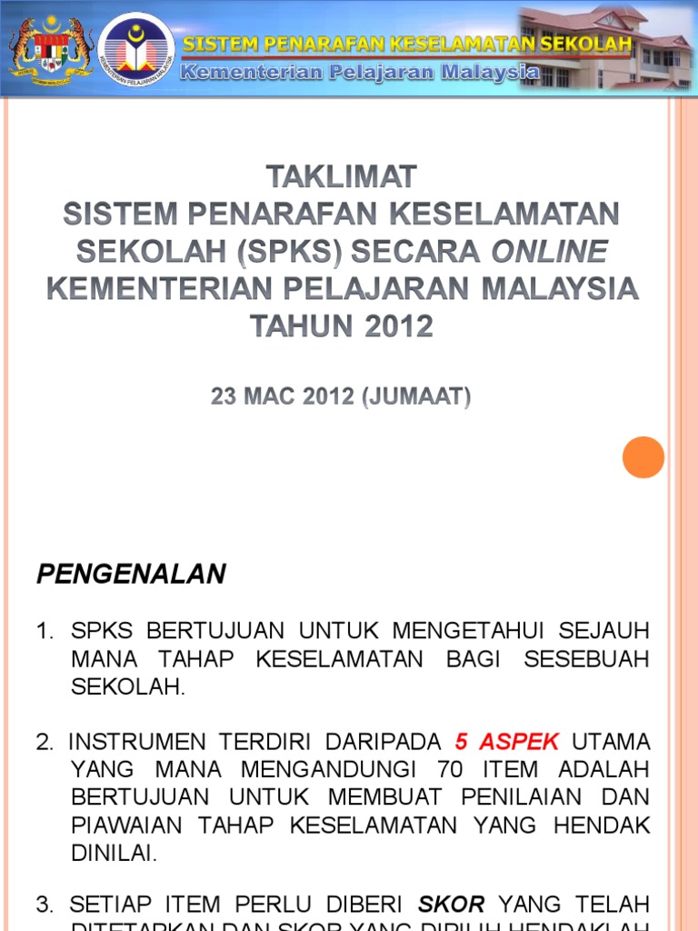 Sistem Penarafan Keselamatan Sekolah Spks Modul
