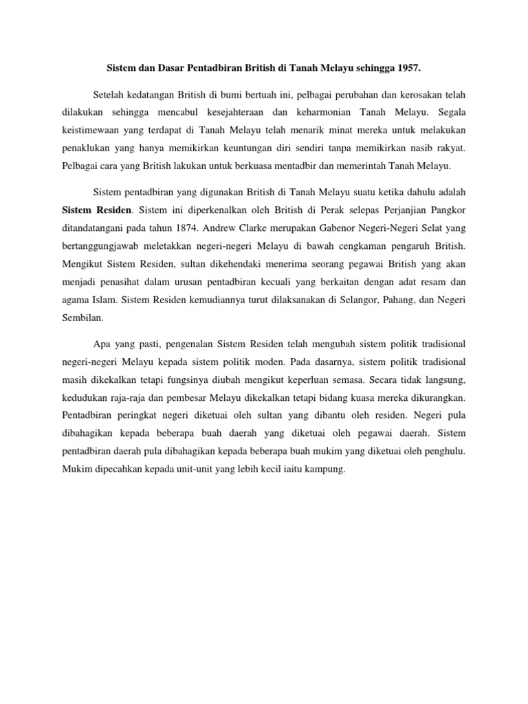 Sistem Dan Dasar Pentadbiran British Di Tanah Melayu Sehingga 1957