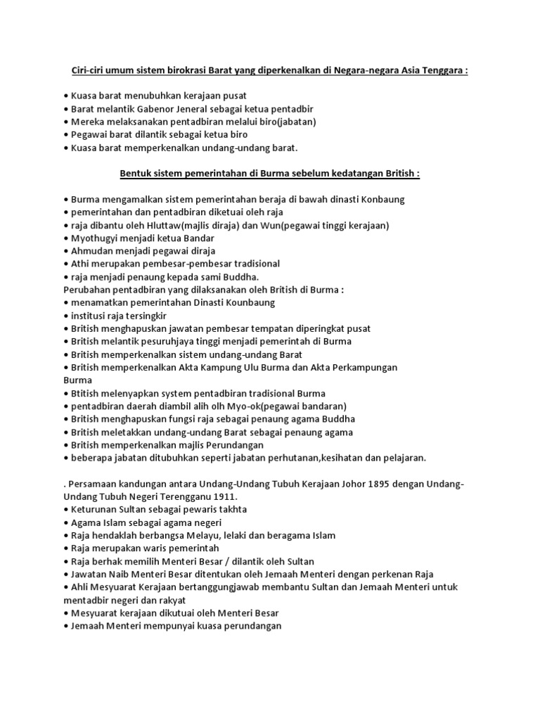 Bentuk Sistem Pentadbiran Sebelum Kedatangan Kuasa Barat
