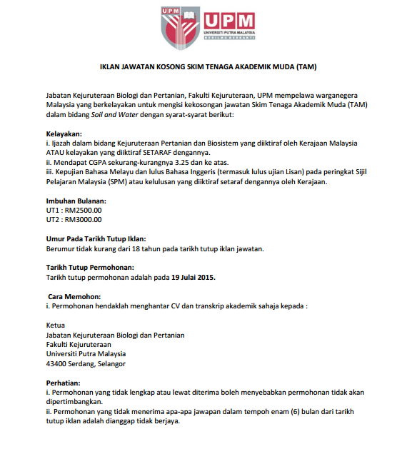 Jawatan Kosong Universiti Putra Malaysia Upm 19 Julai 2015 Jawatan Kosong Kerajaan Swasta Terkini Malaysia 2021 2022