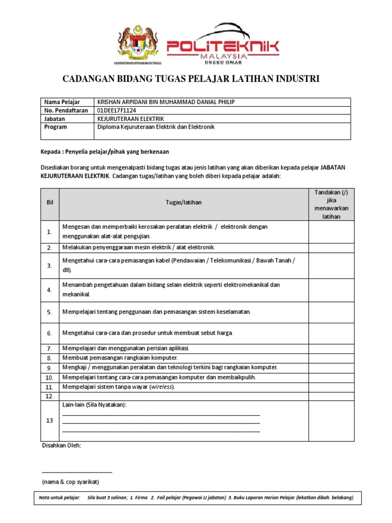 Laporan Penuh Latihan Industri Pelajar Politeknik Perdagangan