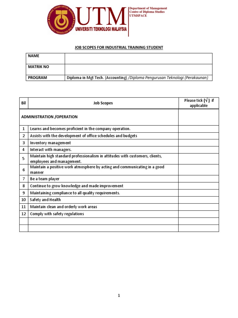 Skop Kerja Latihan Industri
