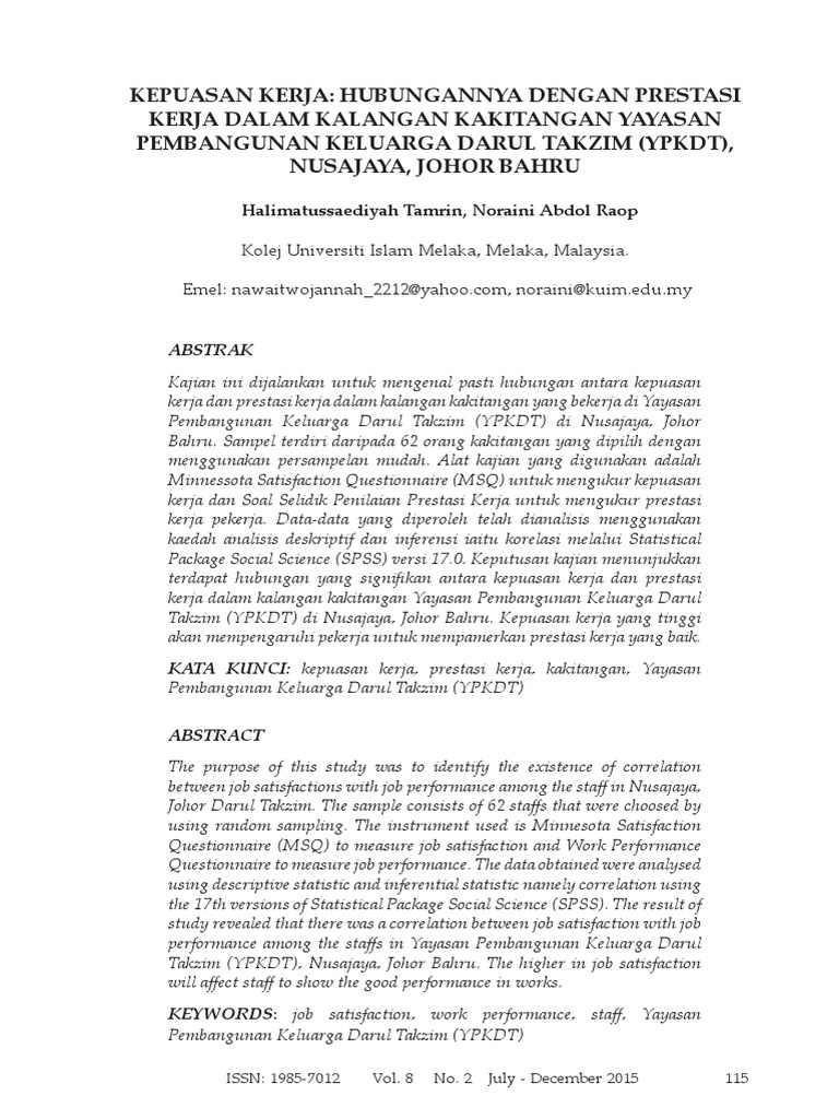 Pdf Hubungan Antara Kepuasan Kerja Dengan Kualiti Perkhidmatan Dalaman Staf Majlis Sukan Negeri Negeri Di Malaysia