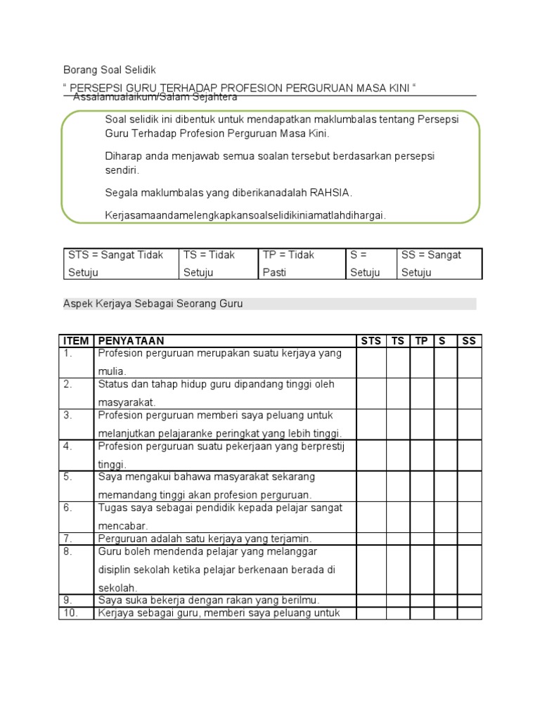 Contoh Borang Soal Selidik Komunikasi Dalam Organisasi