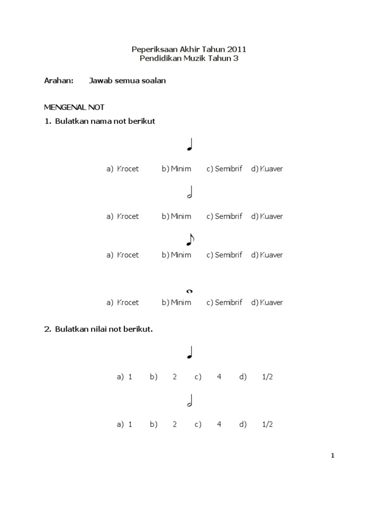 Soalan Dunia Muzik Tahun 3 Kssr