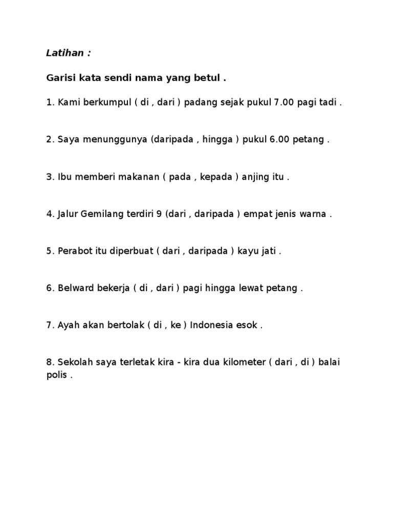 Kata Sendi Nama Dan Contoh Contoh Ayat