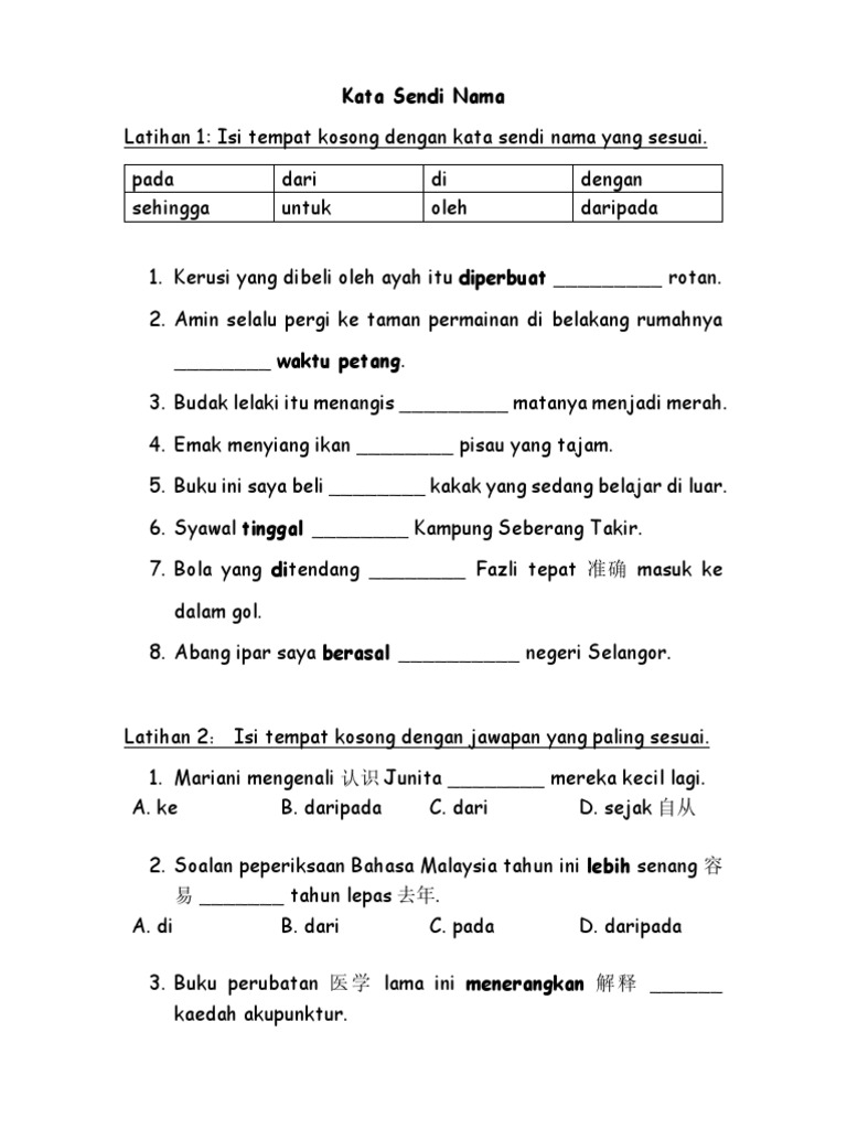 Latihan Kata Sendi Nama Tahun 4 Google Search In 2020 Person Kata Nama