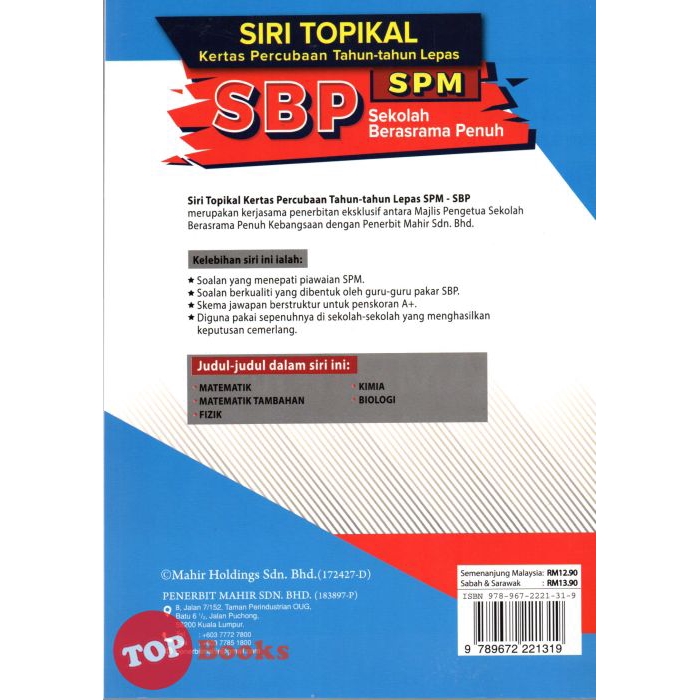 Topbooks Mahir Siri Topikal Kertas Percubaan Tahun Tahun Lepas Sbp Spm Matematik Dwi Kertas 1 2 2020 Shopee Singapore