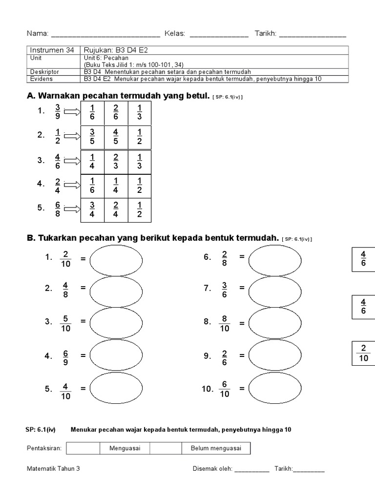 Soalan Matematik Tahun 3 Pecahan Kuora P