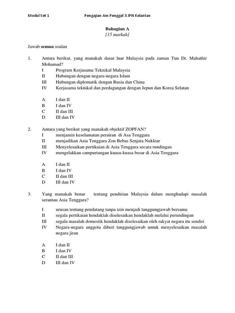 Soalan Objektif Pengajian Am Asean Docx