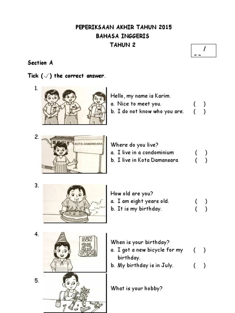 Peperiksaan Akhir Tahun Bahasa Inggeris Tahun 2 2018