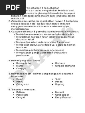 Nota Sains Tahun 6 Unit 5 Pemeliharaan Dan Pemuliharaan Chang Tun Kuet