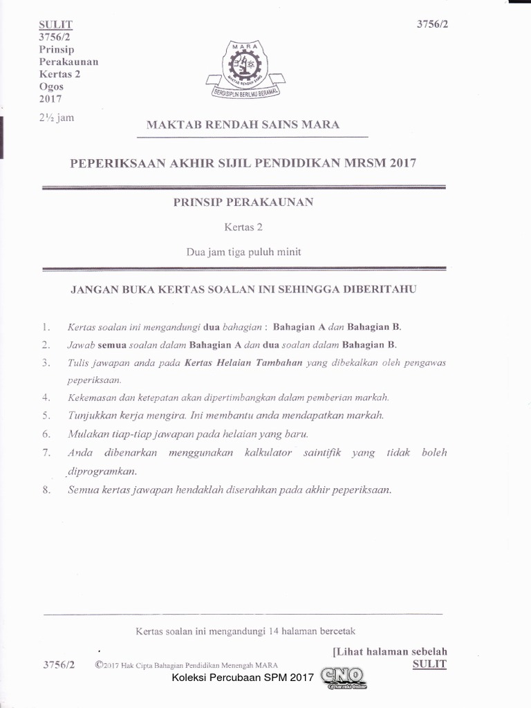 Soalan Sebenar Prinsip Perakaunan Spm 2017