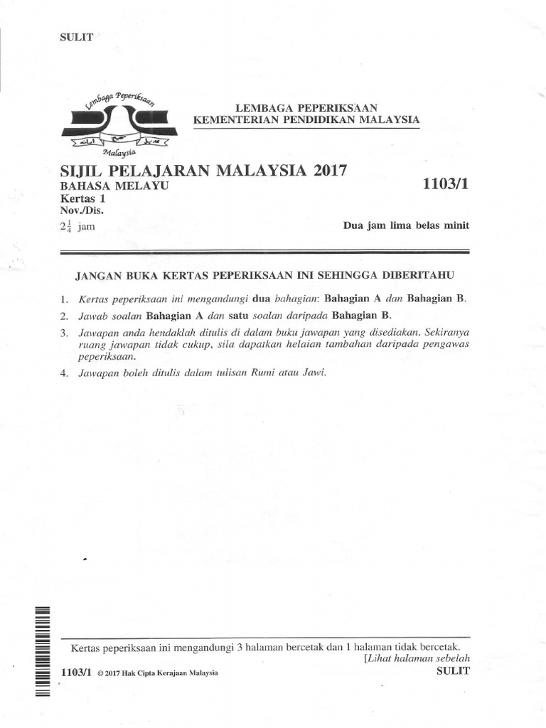 Spm 2017 Sebenar Bahasa Melayu Kertas 1