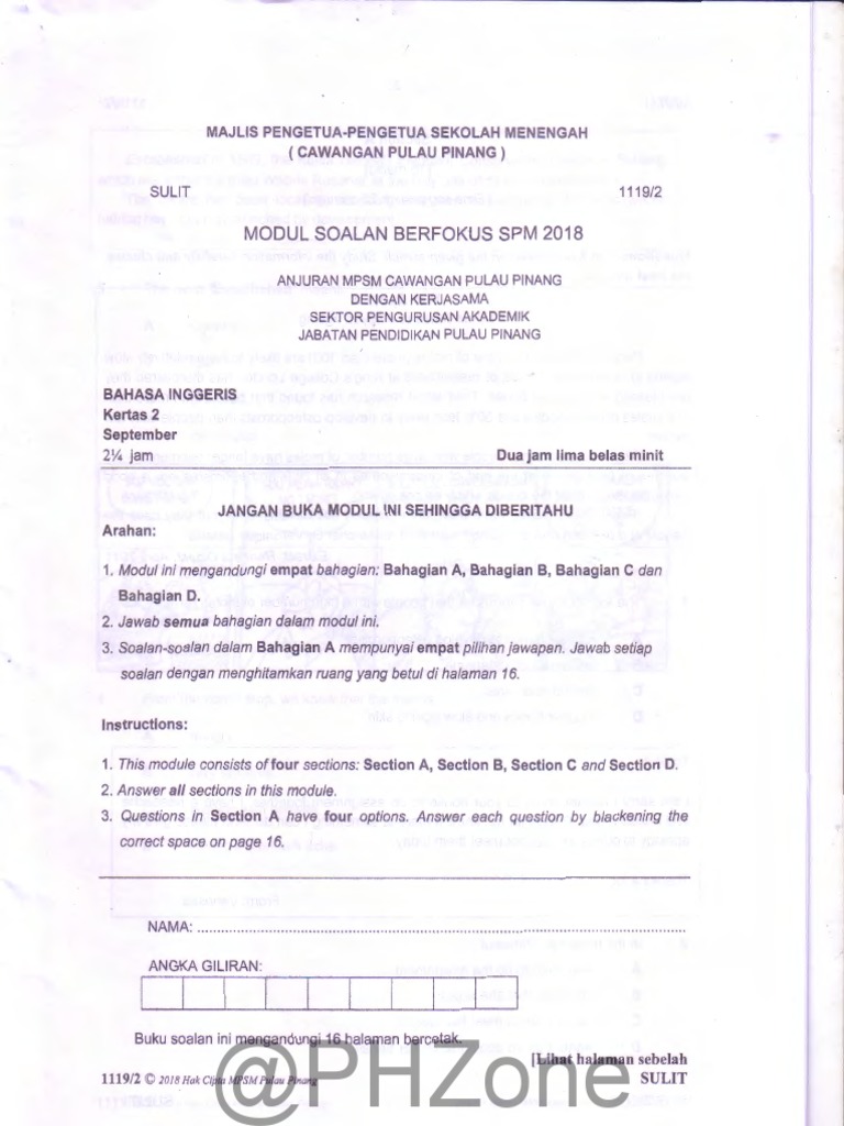 2018 Percubaan Spm Pulau Pinang Bahasa Inggeris Kertas 2