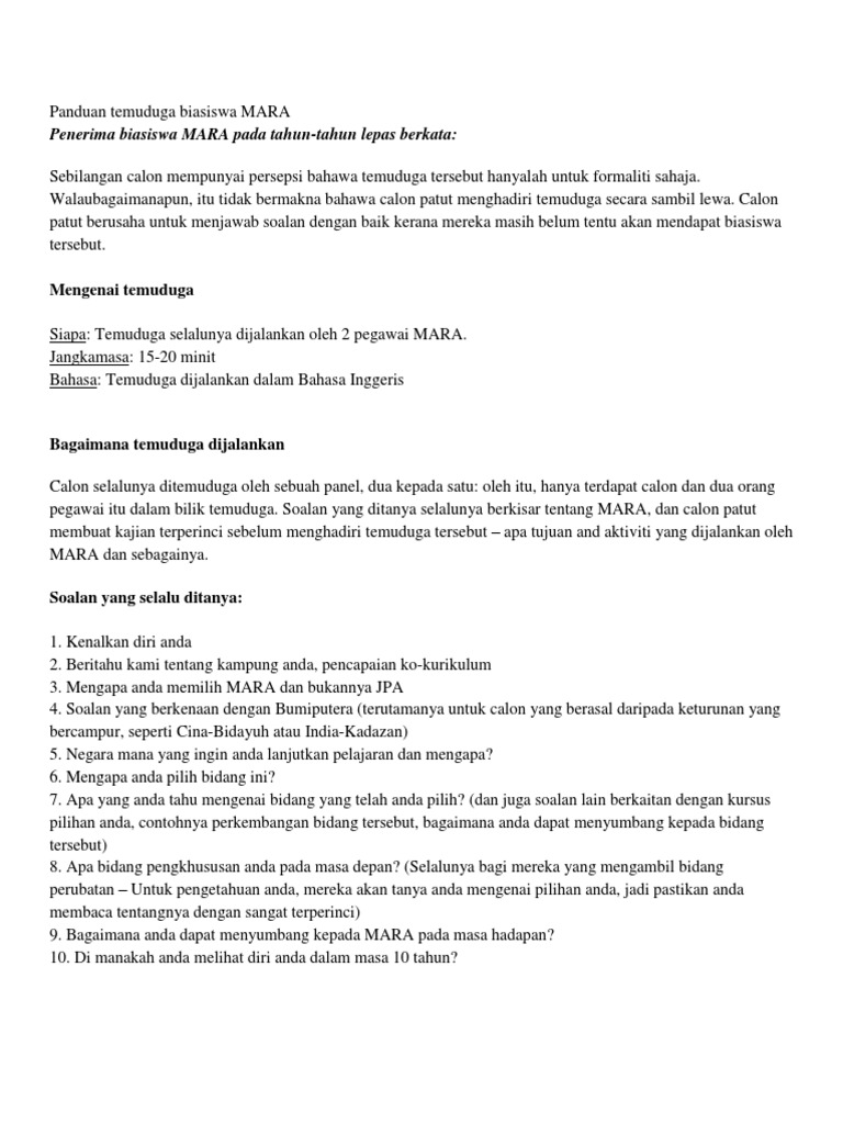 Soalan Temuduga Biasiswa Mara Viral Blog 0