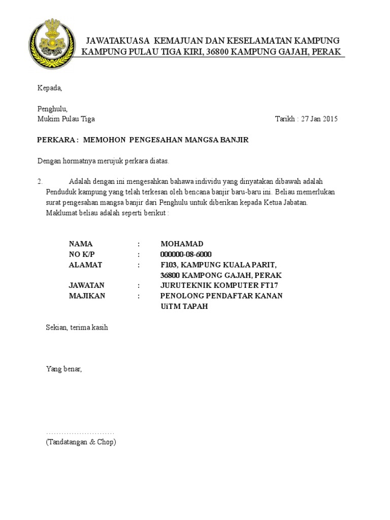 Jkkk Contoh Surat Sokongan Ketua Kampung
