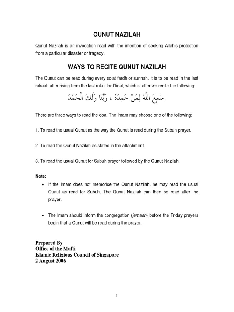 Doa Qunut Nazilah Eng Salat Theocracy