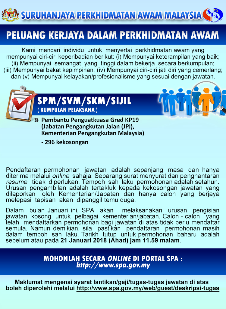 Jawatan Kosong Di Suruhanjaya Perkhidmatan Awam Malaysia Spa 2019 Seluruh Negara Jobcari Com Jawatan Kosong Terkini