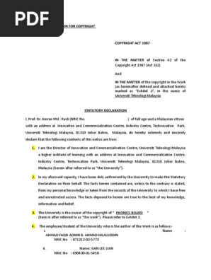 Statutory Declaration For Copyright Civil Law Common Law Virtue