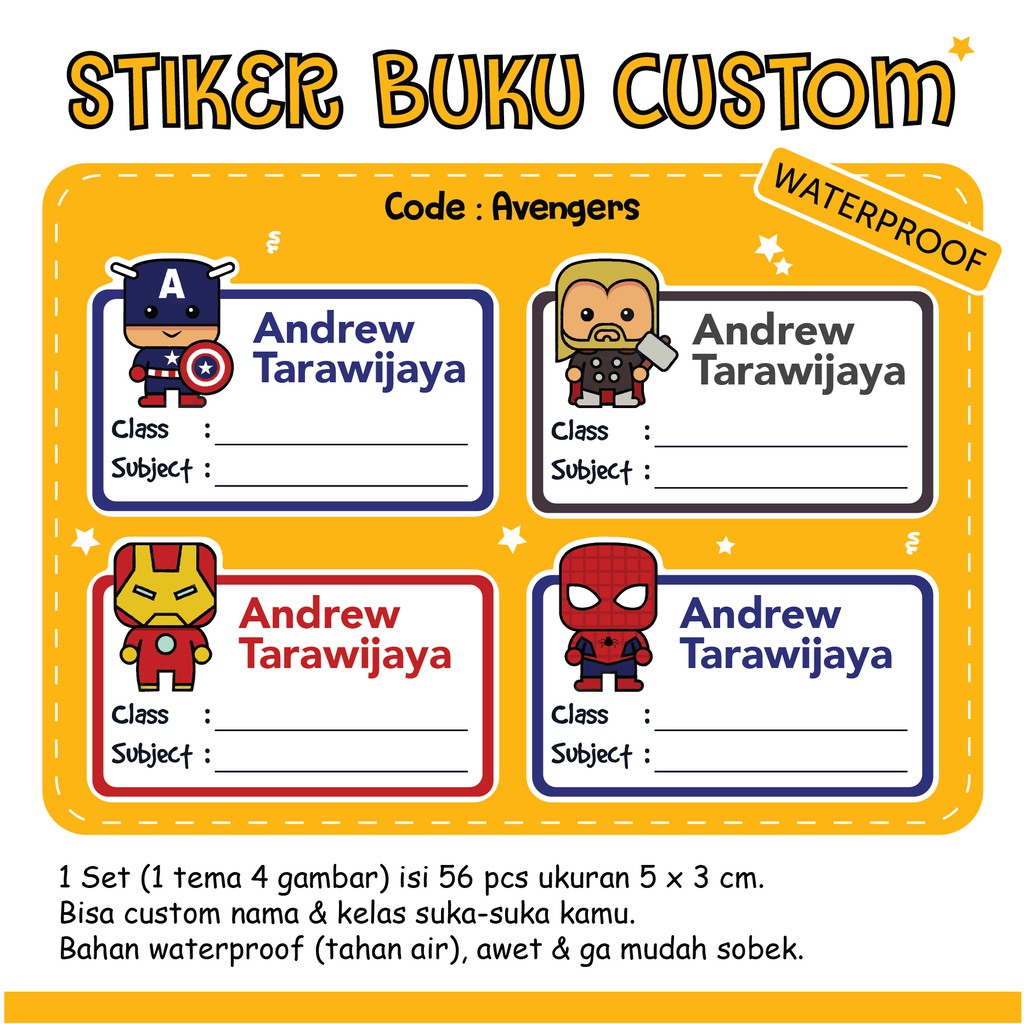 Stiker Nama Buku Sekolah Kelas Pelajaran Anak Sd Smp Tsum Superhero Lazada Indonesia