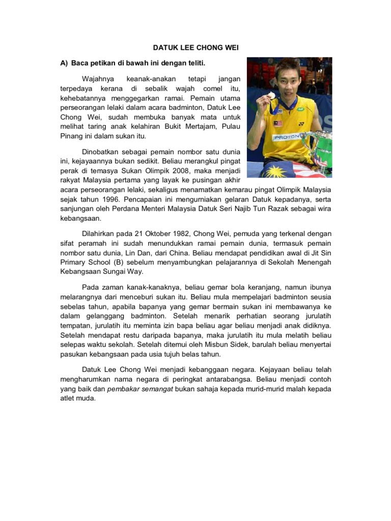 Sejarah Dan Pencapaian Datuk Lee Chong Wei Dalam Sukan Badminton Iluminasi