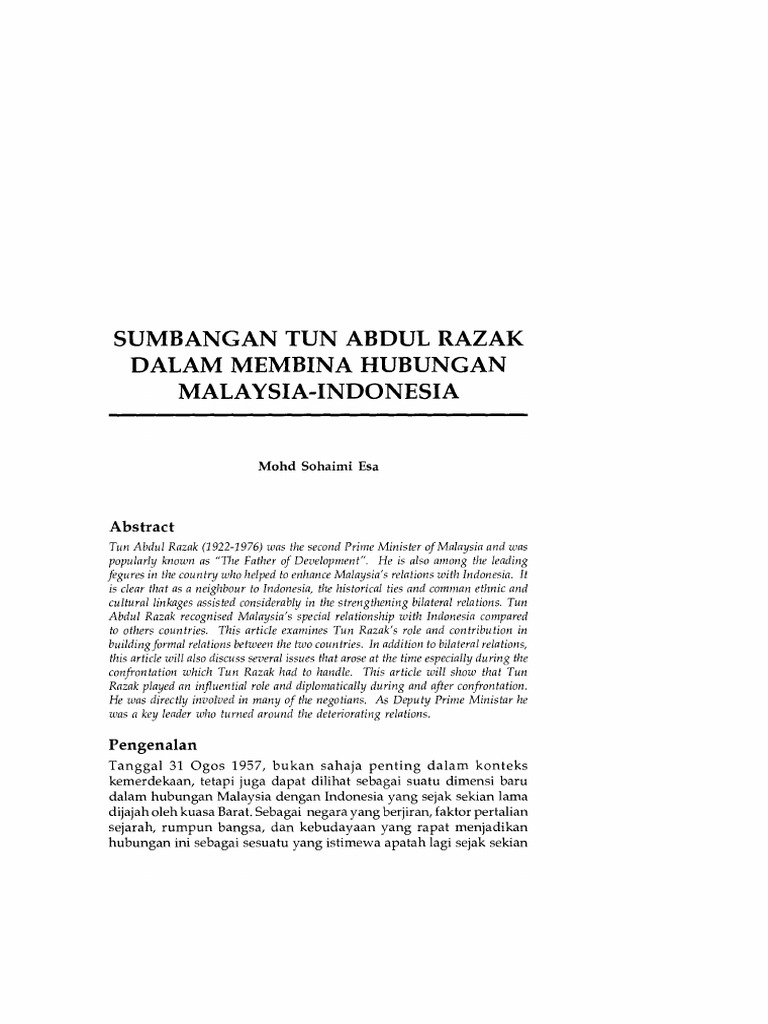 Sumbangan Tun Abdul Razak Dalam Membina Hubungan Malaysia Indonesia Sejarah Journal Of The Department Of History