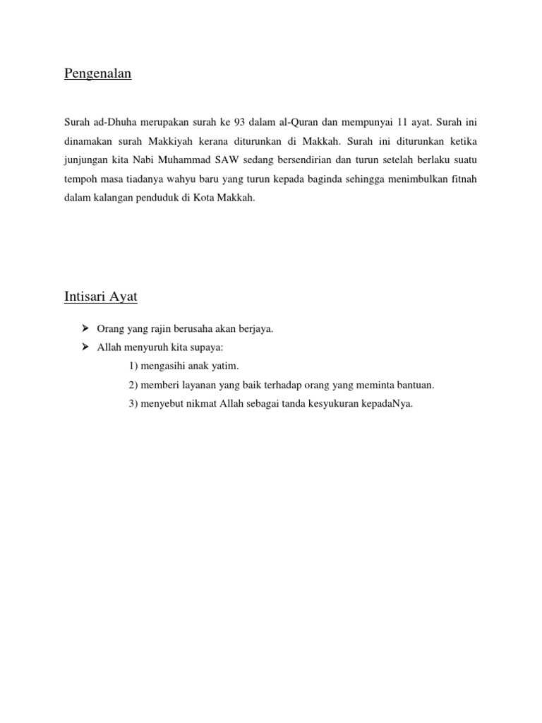 Doc Ebab Sebab Turunnya Surat Ad Dhuha Oleh Annisa Khairiyah Iphan Santhoso Academia Edu