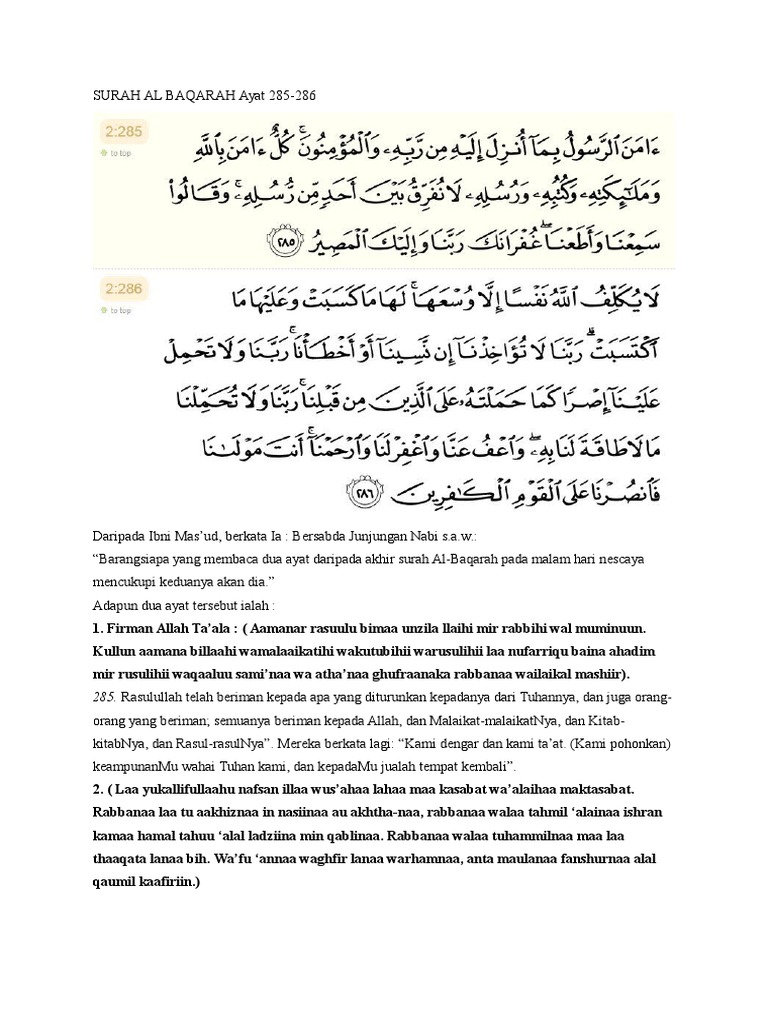 Versi Lengkap Surah Al Baqarah Ayat 285 286 Docx Document